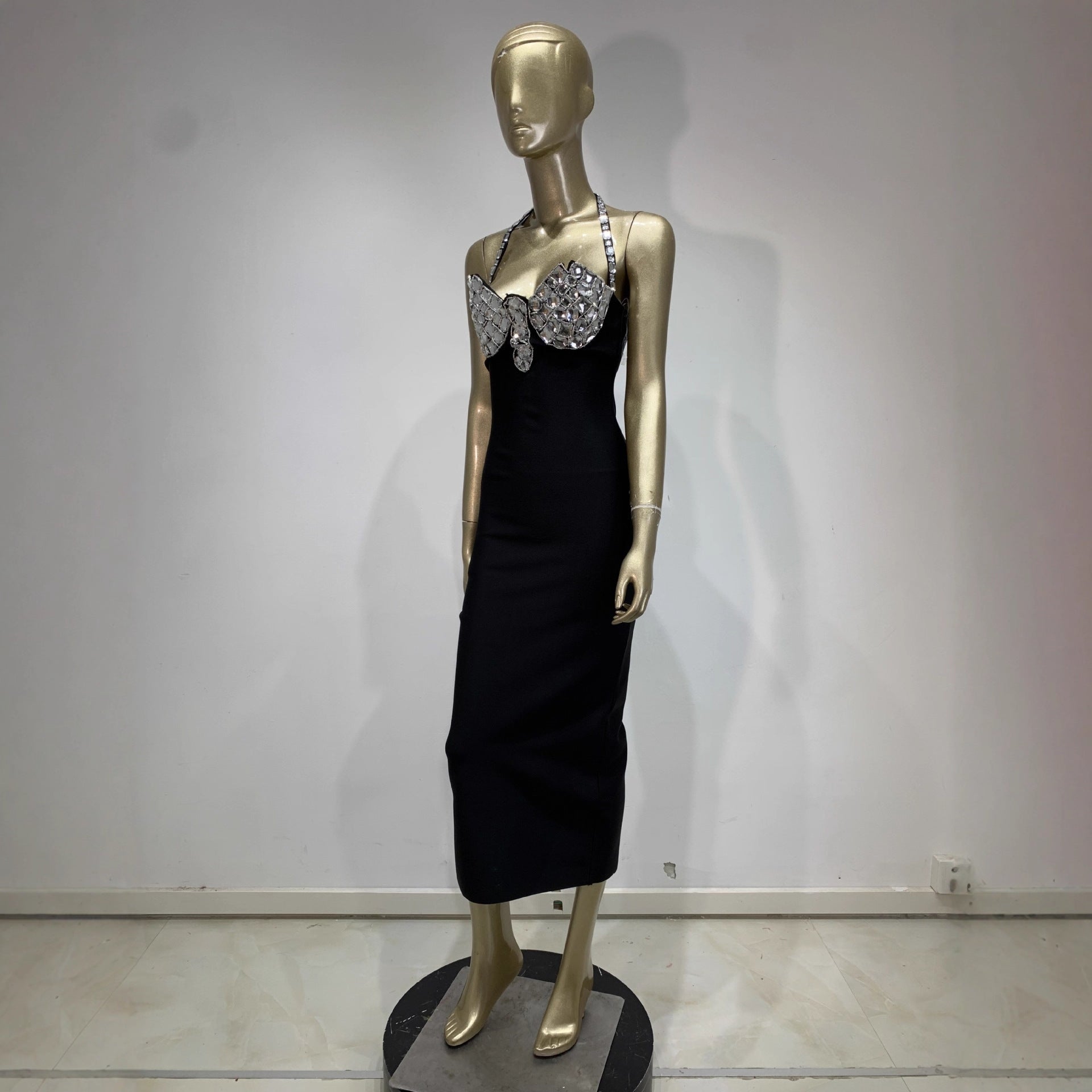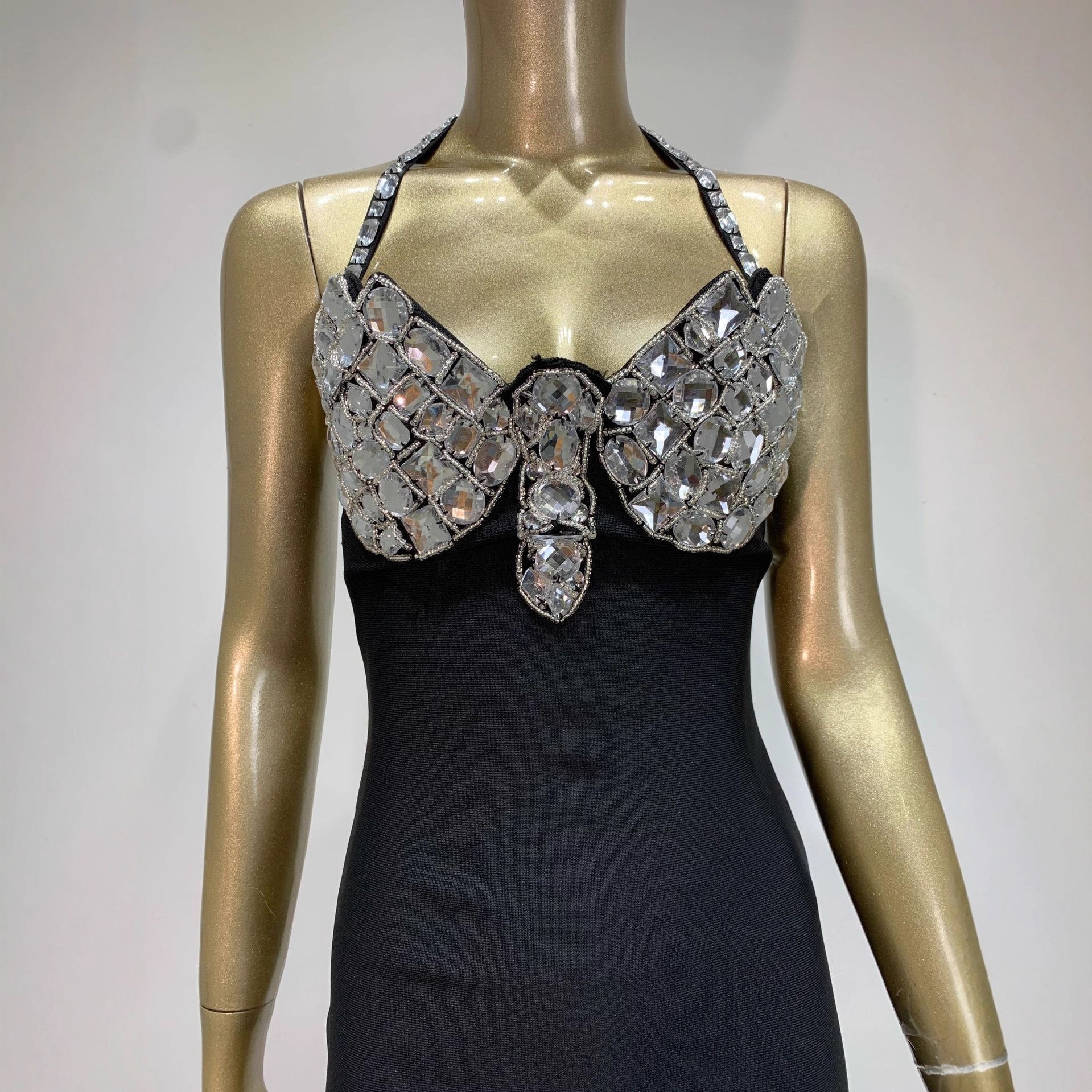 Butterfly Rhinestone Halter Bodycon Bandage Dress