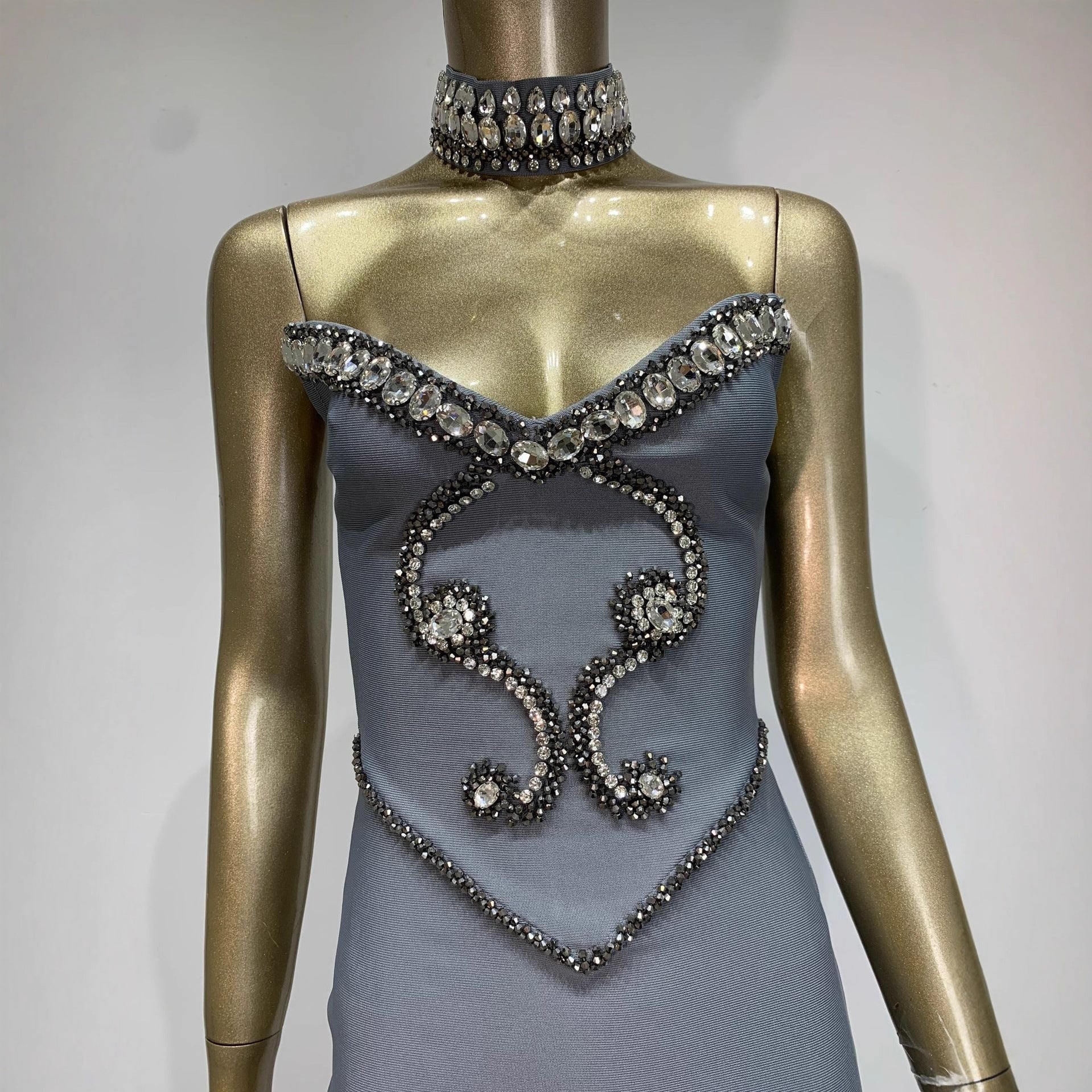 Rhinestone Beaded Bodycon Evening Maxi Gown
